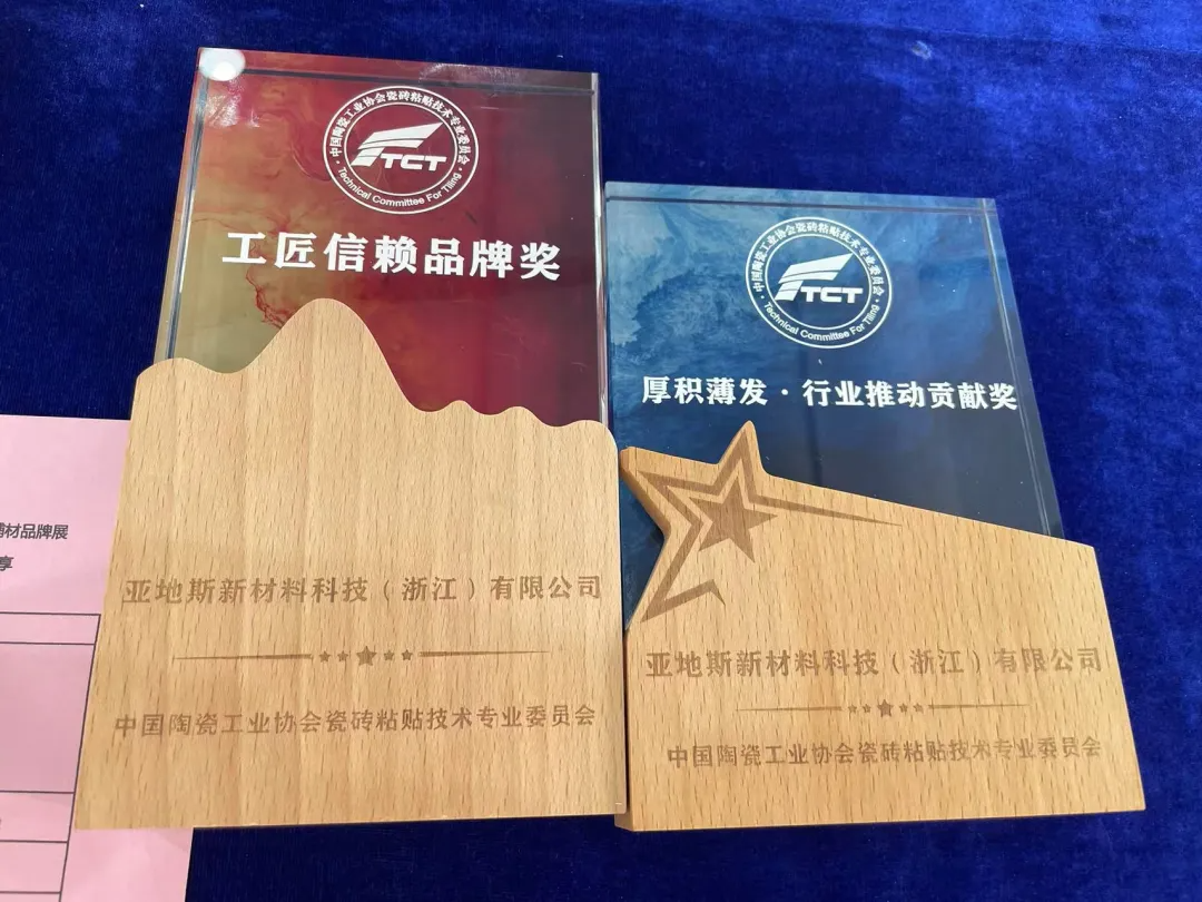 在兩次活動中亞地斯新材料科技(浙江)有限公司分別連續(xù)斬獲工匠信賴品牌獎和行業(yè)推動貢獻獎及首屆工長推薦找平材料品牌獎。