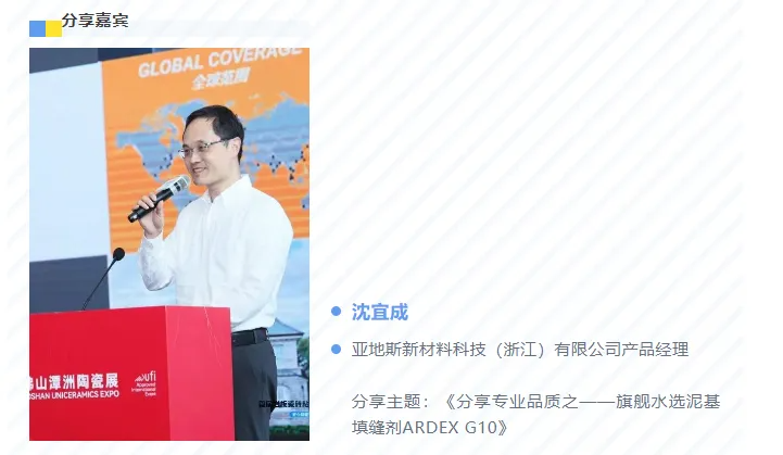 亞地斯新材料科技(浙江)有限公司產(chǎn)品經(jīng)理沈宜成在本次演示會上進行了成果分享,主題為:《分享專業(yè)品質(zhì)之——旗艦水選泥基填縫劑ARDEX G10》;