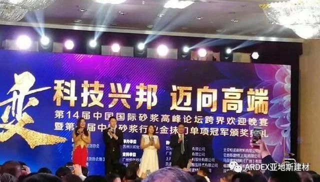 近日,銳變2018—第十四屆中國國際砂漿高峰論壇歡迎晚宴暨第十一屆中國砂漿行業金抹刀單項冠軍頒獎典禮在世紀廳隆重舉辦。